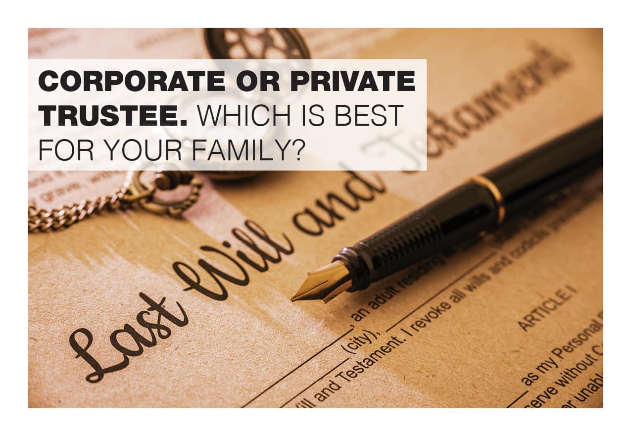 A private trustee also needs to follow the legal obligations regarding performance reporting, paying taxes and making distributions from the trust’s income or capital. Choosing a trust and estate attorney as a personal trustee may mitigate some of these issues. It is also prudent to name a successor trustee, in the event of the death or disability of the initial trustee.